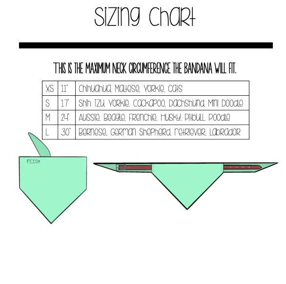 All Fetch bandanas are handmade with your dog in mind. We take pride in our work and focus our attention to the tiniest detail. Your dog's safety is important to us so we make sure to select sturdy fabrics and triple stitch our bandanas to enhance durability.